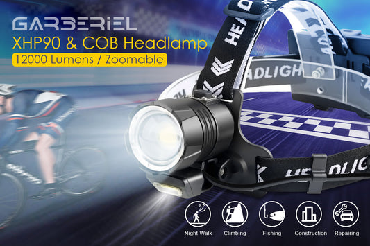 Garberiel High Lumens XHP90 Rechargeable Headlamp