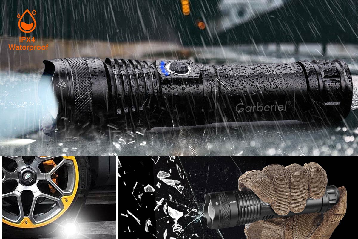 Garberiel XHP50 Super Bright 3500 Lumens Zoomable Rechargeable Flashlight