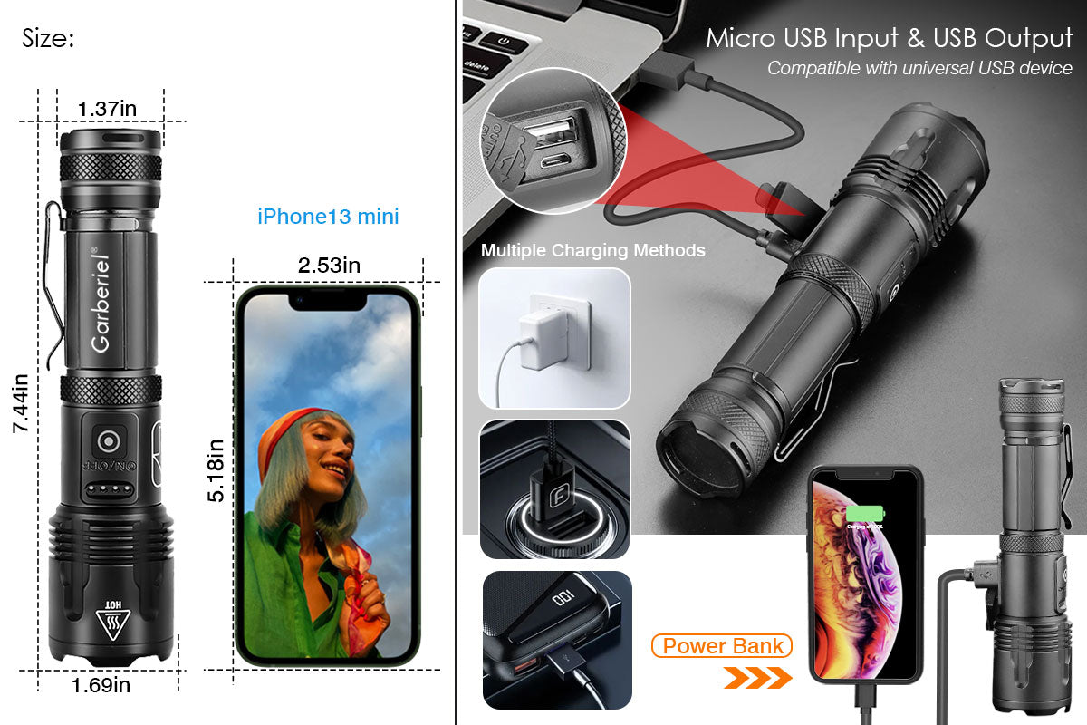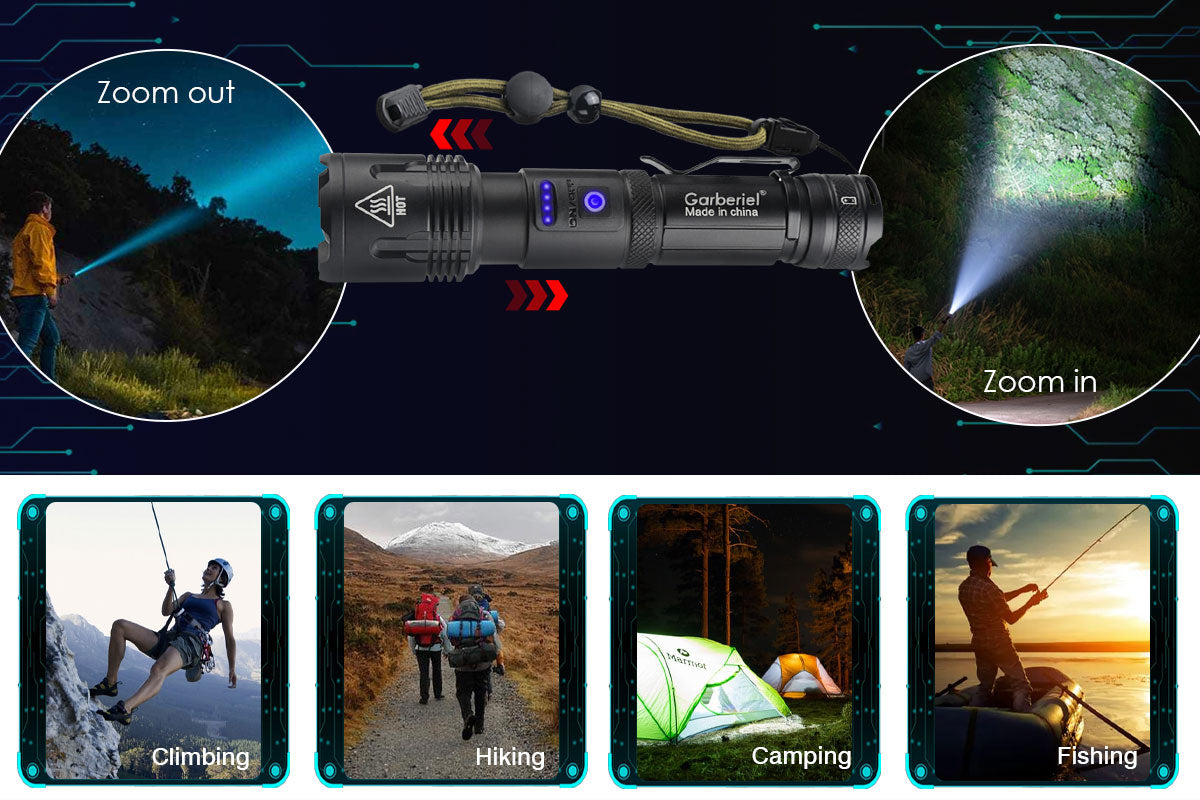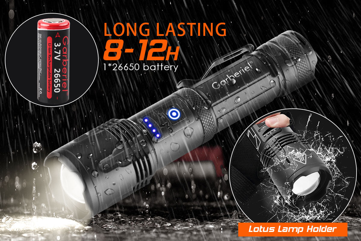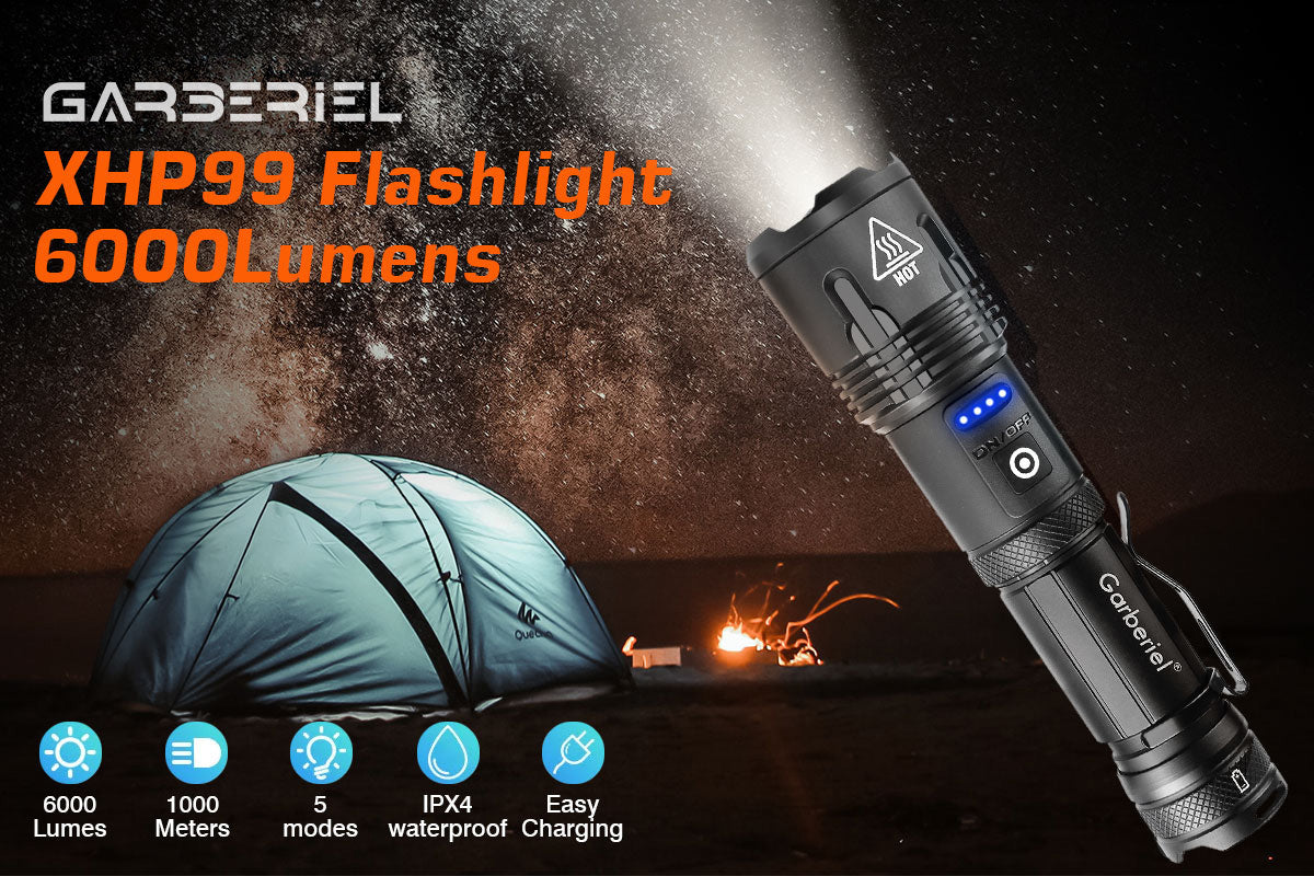 Garberiel XHP99 LED 6000 High Lumens Flashlight USB Rechargeable